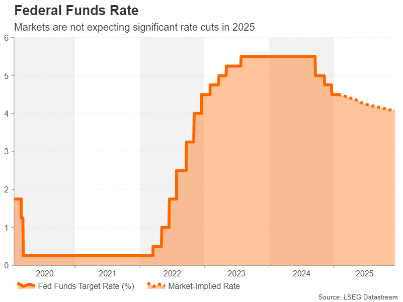 A resilient US economy and sticky price pressures have left the Fed little room to lower borrowing costs even before President Trump and a Republican-led Congress have had a chance to enact their low taxes, high tariffs policy cocktail. Chair Powell has been keen to stress that the Fed is not on a preset course, leaving the door open to rate increases should the new administration’s policies push inflation higher.