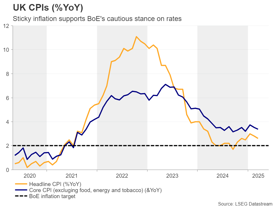 The PMIs for April raised concerns, as the composite index dropped into contractionary territory, reflecting the uncertainty among companies following Trump’s ‘Liberation Day’. BoE Governor Bailey also sounded concerned lately, saying that they are focused on the potential economic shock from Trump’s tariffs, but he added that the UK economy is not close to recession at the moment.