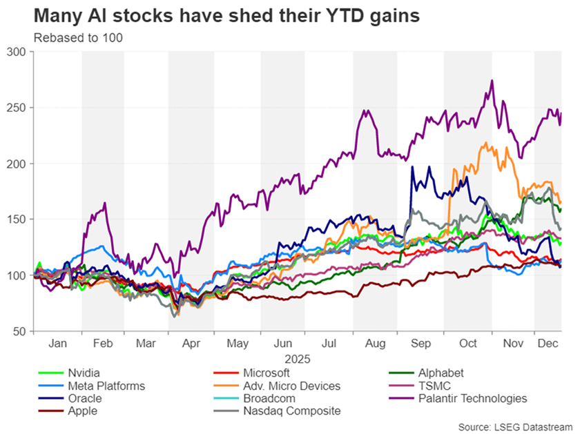Still, this year’s slightly prolonged duration of holiday-thin liquidity increases the risk of a negative AI-related headline triggering a new round of selloff in tech stocks if fresh doubt is cast on valuations.