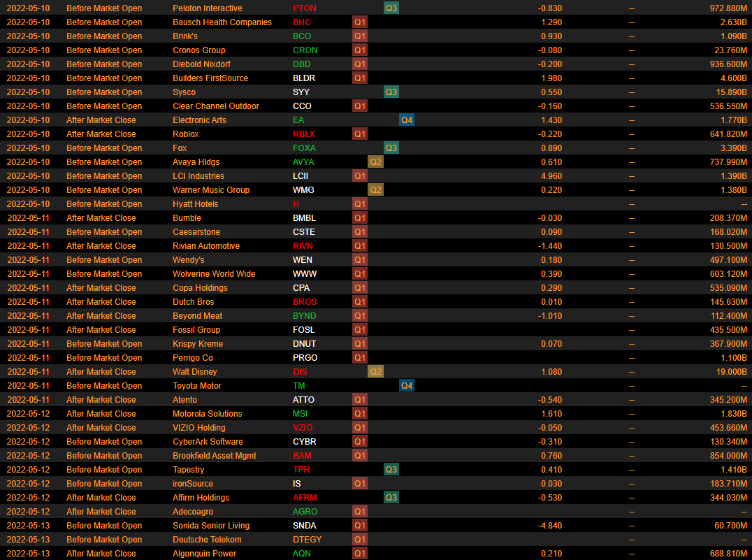 The main grouping of S&P 500 companies has reported, but next week still sees a lot of names with strong interest. So far 413 companies from the S&P 500 have reported and 79.9% of them have beaten estimates according to Refinitive Lipper Alpha. Retail favorites such as AMC, Rivian (RIVN), Lordstown Motors (LORD)and Buffet favorite Occidental (OXY) are up next week.