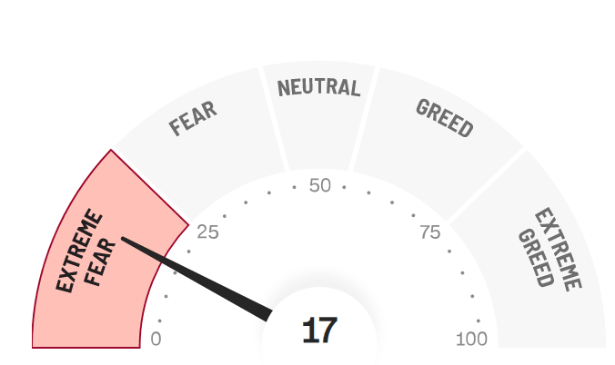 Now the second big daddy (well close),Tesla (TSLA), missed delivery estimates on Sunday, and the stock is already down 4% premarket. This will make any rally harder to take hold. There are some signs that a brief pause in selling pressure may be imminent though. Sentiment is terrible, and this is often a contra indicator. It worked well for the June rally. We have any number of metrics, but the most common, the CNN Fear and Greed index, is at a noted low.
