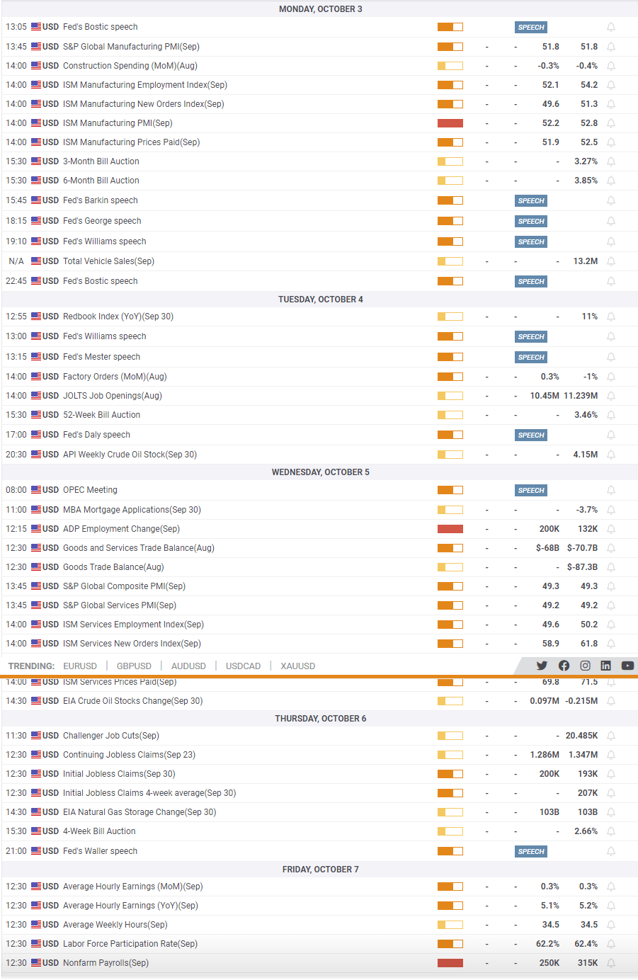 Not a huge week as we are near the main Q3 earnings season now.