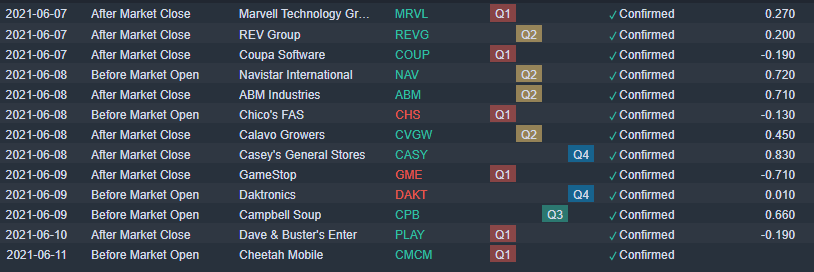 Some earnings laggards still going with one notable name that should grab some headlines, GameStop (GME) on Wednesday. The number itself will be overshadowed by the outlook and possible diversification into NTF's and other rumoured areas.