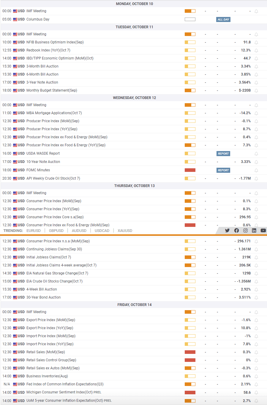 Really, Thursday is the big one with CPI data due. Those of you also looking at FX, the IMF meeting could be of interest as there may be more talk of the dollar hurting other economies. This may also see calls for a more doveish tilt for the Fed. We also have some interesting Treasury auctions with the 3 and 10-year versions. Two weeks ago we had some poor demand for 2 and 5-year auctions, which spiked yields again and led equities lower. These will be more important than usual.