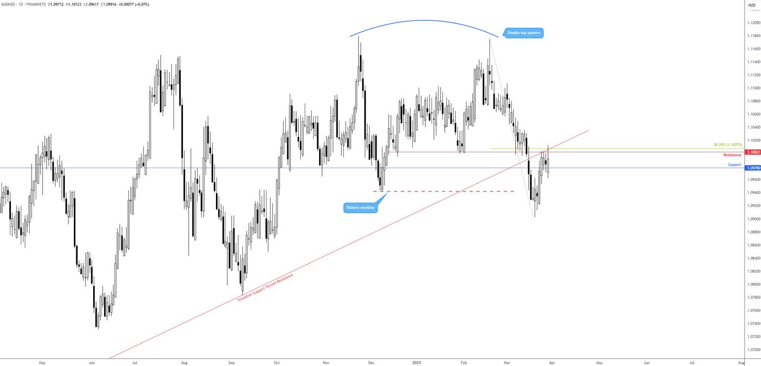 European CPI inflation data for March is out on Tuesday and is forecast to rise by 2.3% YY, matching February’s data, while YY core inflation is expected to slow to 2.5% from 2.6%. Despite money markets pricing in an 88% probability of a 25 bp cut for April’s meeting, in an interview with CNBC, Governing Council member Pierre Wunsch recently commented that the ECB should at least have the possibility of a rate pause ‘on the table’, adding that US trade concerns complicate the decision-making process. Should CPI inflation slow by more than expected, this could prompt increased rate cut bets and add to euro (EUR) weakness. Conversely, a meaningful upside surprise would likely see a bid in the EUR.