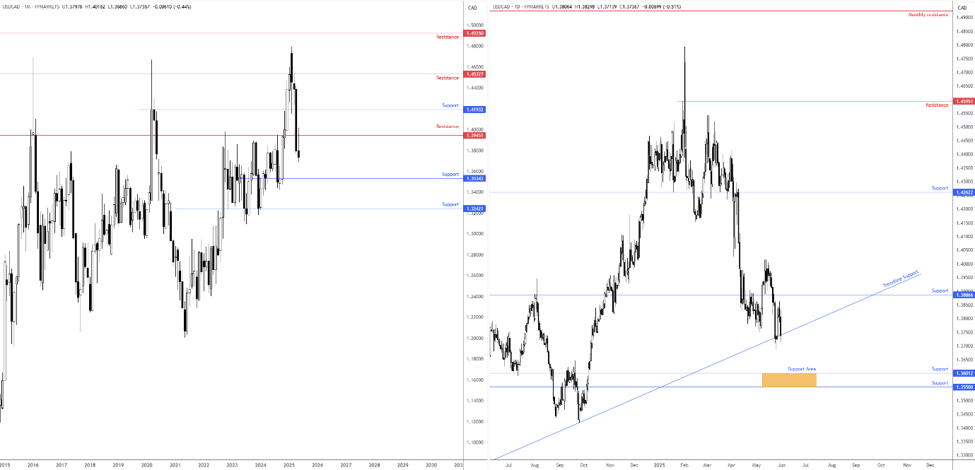 C$1.3945 was made short work of in April and retested as resistance in May, following a fourth consecutive month in the red. Technically speaking, the scope to explore deeper water is evident on the monthly scale until C$1.3534, followed by another layer of support from C$1.3242.