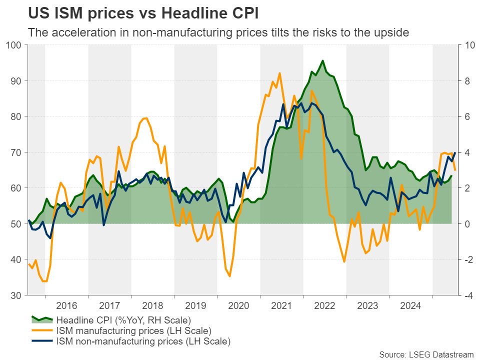 Although manufacturing prices slowed according to the ISM survey, the non-manufacturing prices subcomponent revealed a strong acceleration. Given that the manufacturing sector accounts for only 10% of US GDP, this implies that the risks surrounding the CPI and PPI data may be titled to the upside. Hotter-than-expected inflation, even before the reciprocal tariffs enter the equation, could prompt traders to remove some basis points worth of rate cut bets from the table.