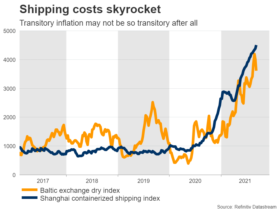 That narrative took a beating lately as several Asian economies went into lockdowns to battle the Delta outbreak. Business surveys like the PMIs highlight that supply disruptions have become even worse. Production and shipping costs are rising, and companies are passing much of that on to consumers in the form of higher prices. Even the world’s largest chipmaker, TSMC, is raising its prices significantly next year.