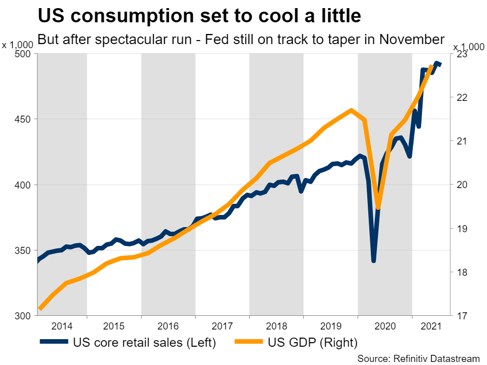 Without any central bank meetings on the agenda next week, the spotlight will fall on the latest edition of US inflation and retail sales. The chances of a Fed taper announcement this month have fallen dramatically after the disappointing jobs report, but this dataset could still be crucial for the normalization timeline and the dollar. There’s also a storm of economic releases from the UK, Canada, Australia, and China.