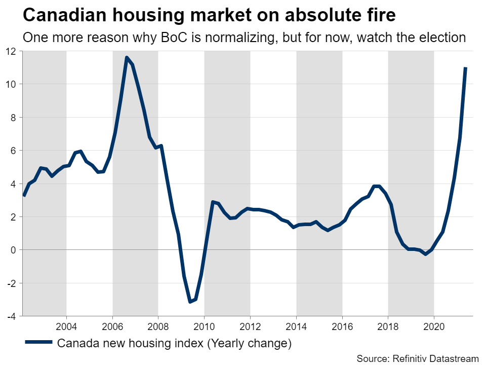 Overall, the economy is still in good shape. Vaccinations have been impressive, the jobs market has almost recovered, inflation is nearly double the BoC’s target, and the housing market is on fire. Therefore, the outlook for the loonie remains positive, although for now, a lot will depend on the upcoming election on September 20.