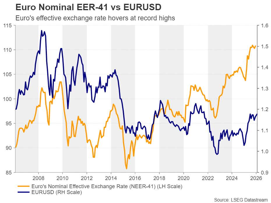 Euro traders will also have to digest preliminary GDP data for Q4, due to be released on Friday. The ECB also kept interest rates unchanged on Thursday, providing little new information in the accompanying statement. President Lagarde expressed once again the view that the Eurozone economy is doing well but added that a stronger euro could bring inflation down beyond current expectations. On Friday, ECB policymaker Kazaks said that a material strengthening of the currency could trigger a monetary policy response.