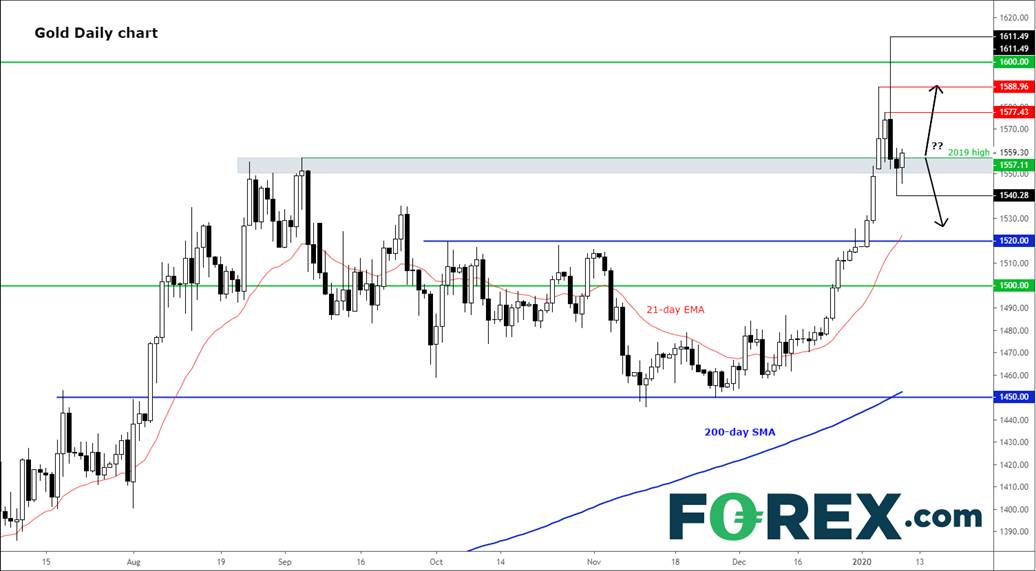 Our featured chart to watch for the week ahead is that of gold. The yellow metal broke last year’s high and key resistance at $1555/57, and investors will be looking to see what happens next. If the precious metal holds above this area then more gains should be expected, especially in light of Friday’s disappointing US jobs report and ongoing central bank support with interest rates and yields being depressed. However, a clean break back below this level would be bearish in the near-term outlook.