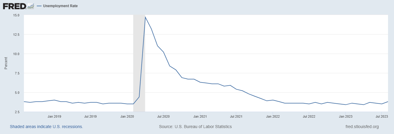 The US unemployment rate surprised markets, however, jumping to 3.8% (its highest level since January 2022), up from the 3.5% expected, adding strength behind a possible goldilocks theme (meaning the economy is not thrown into recession and inflation remains stable). On a MoM and YoY basis, wage growth also moderately slowed. From July to August, wages grew 0.2% (0.3% expected [0.4% previous]), marking the smallest increase since early 2022, and increased 4.3% in the twelve months to August (4.4% expected [4.4% previous]).