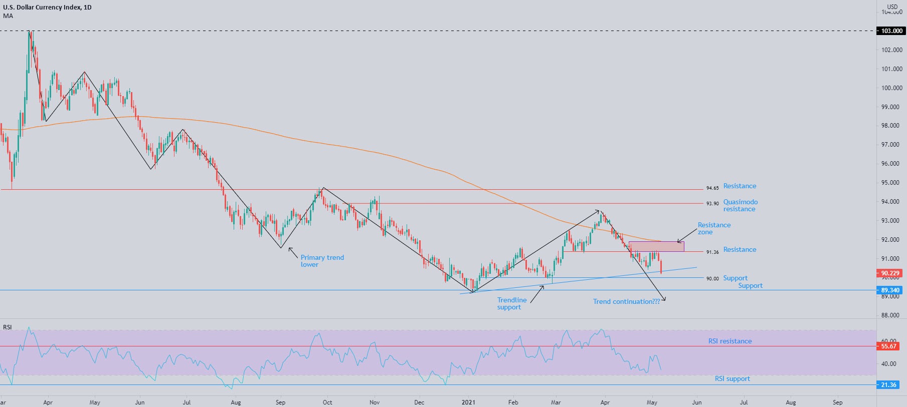 - The combination of trendline support and nearby support at 90.00 unearths a potential bullish scenario this week. However, downside risks remain evident, given the longer-term trend favours sellers. 90.00 support giving way, therefore, perhaps opens the door for an approach to 89.34 support.