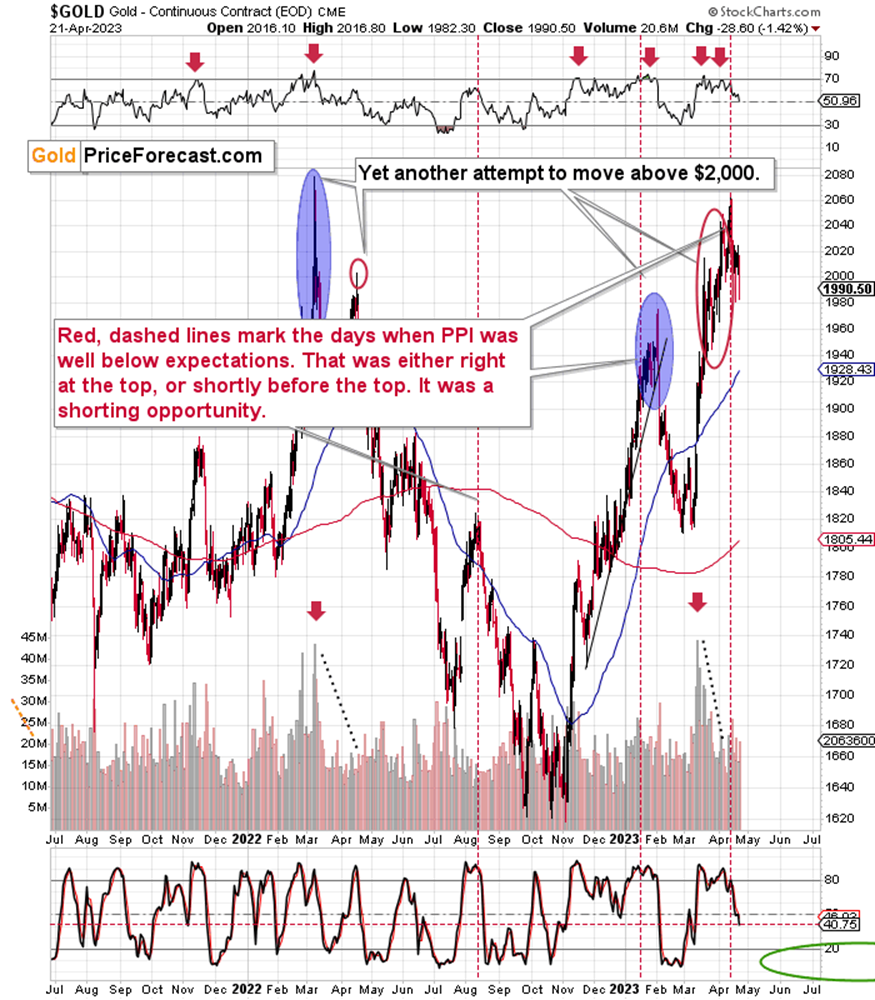 Yet, gold declined and ended the week well below the $2,000 level. This shows that gold – just like mining stocks – just can’t wait to decline here.
