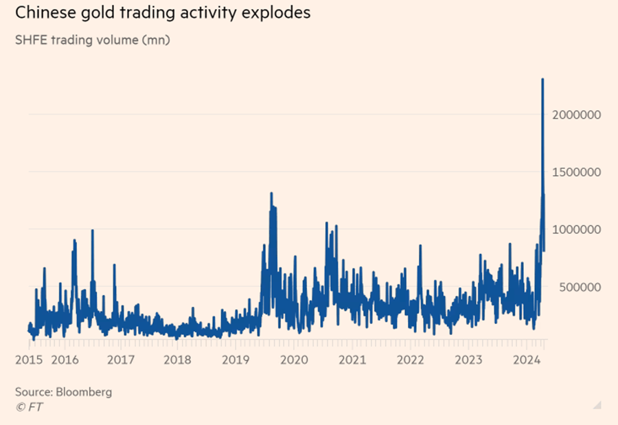 We can also see China’s appetite for gold in activity on the Shanghai Futures Exchange.