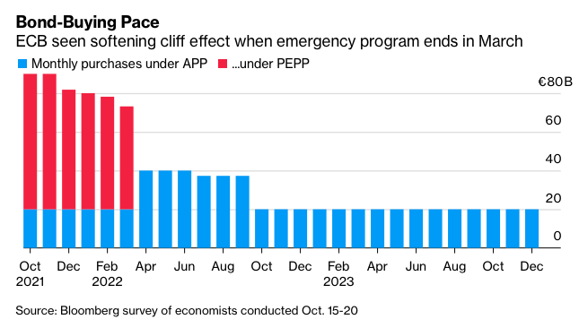 Now the PEPP program has been helpful for the ECB and there has been a talk about ‘flexibility’. The ‘everyday’ easing tool has been the Public APP purchase program. So, expectations are that some of the PEPP programs will end up being part of a larger APP program. The ECB is expected to increase the pace of APP purchases from €20 billion to €40 billion per month in March next year when the APP is due to expire. See below for Bloomberg’s economist’s survey of what is expected.