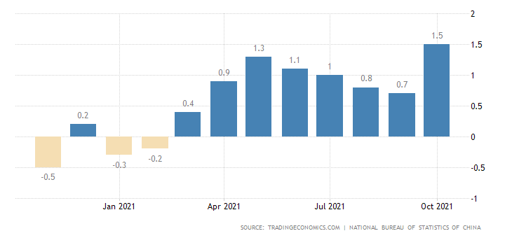 China’s Consumer Price Index (CPI) YoY data to November is due early Thursday afternoon. Last month, China’s CPI accelerated sharply from 0.7% to 1.5% as producers passed on rising costs. Producer costs have risen 13.5% since October 2020, the fastest pace in 26 years. As such, analysts are again expecting a steeper incline for November CPI data. Market forecasts have China CPI hitting 2.5%.