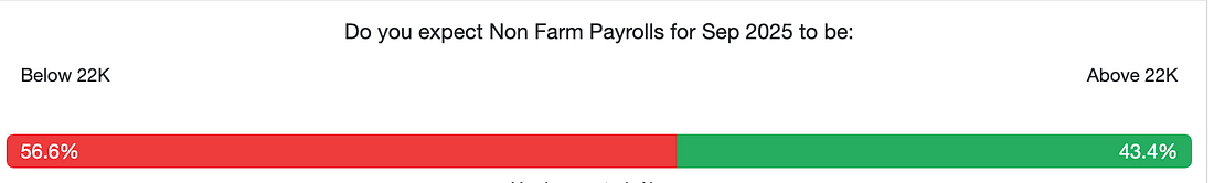 But the conclusion doesn’t change much: you fade it ahead of the release. Because even if the data surprises, the setup argues for pressure into the Monday, October 6, gap opening lower. In other words, you don’t wait for the perfect print — you position into the probability and let the event carry the trade.
