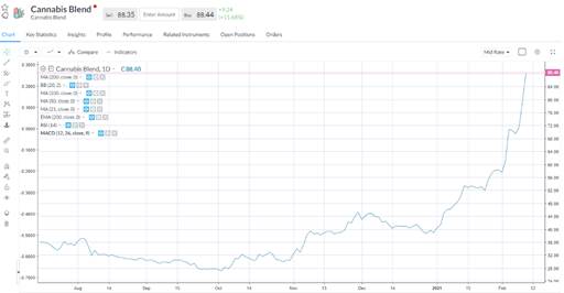 Cannabis Blend – a basket of cannabis stocks has been performing well since November