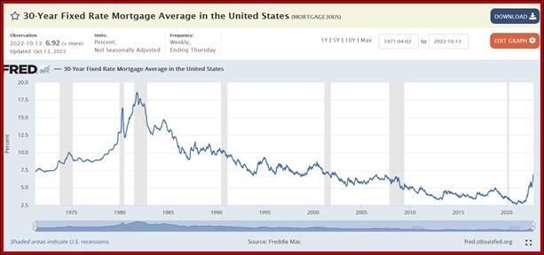 We don’t buy it. In fact, if St. Louis Fed Pres Bullard is right and rate hikes will taper off next year, by June we could see property/housing starting to recover with the new benchmark mortgage rates becoming seen as “normal.” In fact, see the long-term mortgage rate chart from FRED. What’s abnormal is the drop in rates to 2.67% in Oct 2020, something fuelled by the ever-dangerous QE that results in misallocation of resources, in this case, housing. A return to 7.7% is hardly a problem in the grand scheme of things except in the context of the abnormally low rates created by QE.
