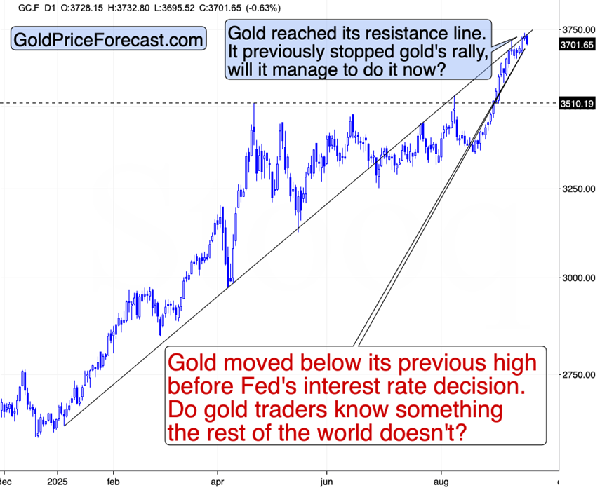 Gold’s decline is not that big when compared to the size of the recent rally, but gold moved below its previous yearly high – could be the sign of things to come.