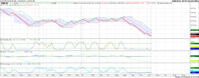 Financials: The June '24 30 Year T-Bond is Down 14 ticks and trading at 115.11.