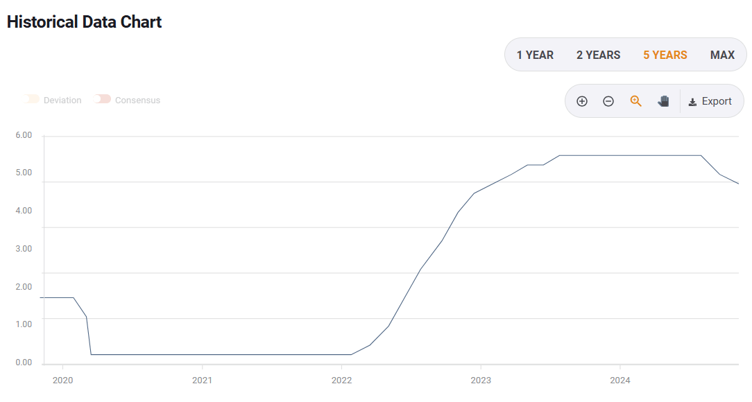 Evolution of interest rates in the United States in the last five years. Source: FXStreet.