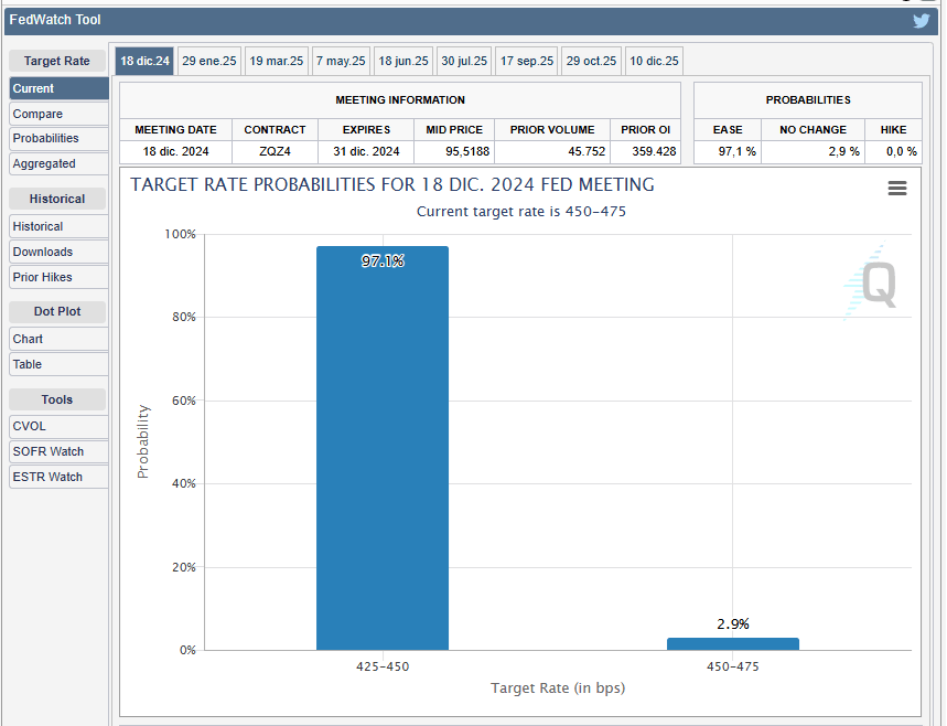 As of December 16, investors price in a 97% probability that the Fed will cut rates on Wednesday, according to data from the CME FedWatch Tool. Only 3% expect the US central bank to hold interest rates steady.
