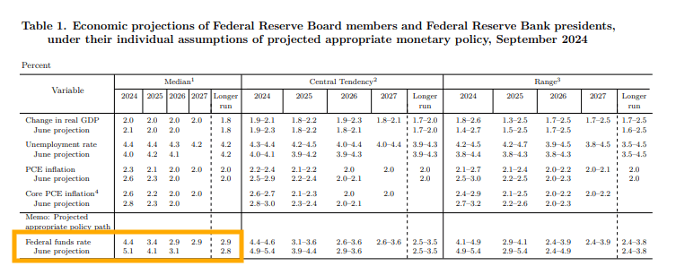 Fed’s latest Summary of Economic Projections, from September. Source: Federal Reserve.