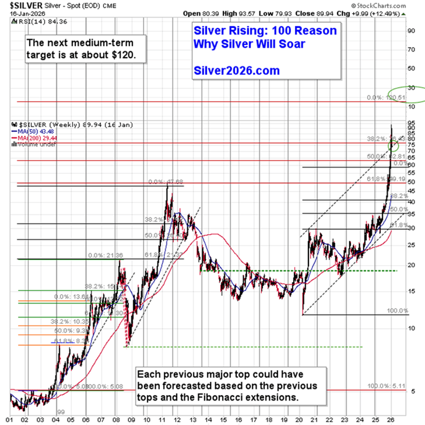 All in all, silver might be on its way to soar to $120 in the following weeks, however, if we get a turnaround in the Greenland situation and the situation de-escalates, the entire precious metals sector, including silver could decline in the short and medium term.