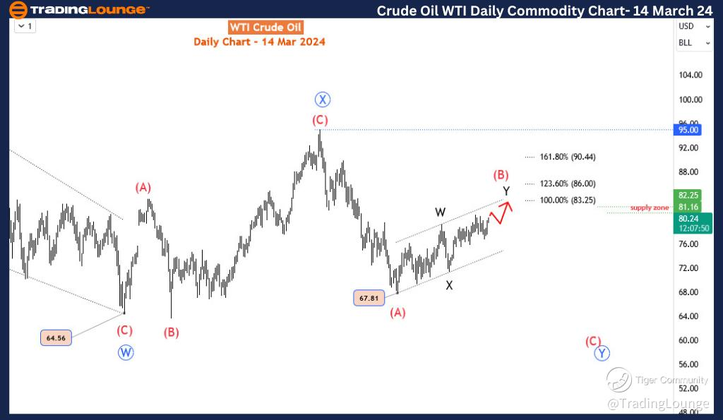 WTI (West Texas Intermediate) crude oil closed on a bullish note on the 13th of March and has continued its upward trajectory, inching closer to surpassing the 80.85 resistance level as it moves towards higher price levels. Through a comprehensive analysis using Elliott Wave Theory, we can anticipate further upward movement in the context of a bullish correction from the low of 67.81 to the high of 83.2. Understanding the dynamics of this move is crucial for traders seeking opportunities to enter the market before the broader bearish trend resumes.