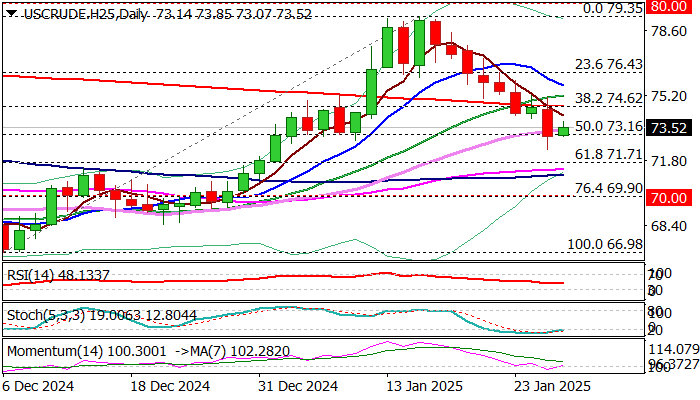 Conversely, firm break above $74.62 to generate reversal signal, which will require lift above $75.00 zone (Fibo 38.2% of $79.35/$72.38 bear-leg / 20DMA) for confirmation.