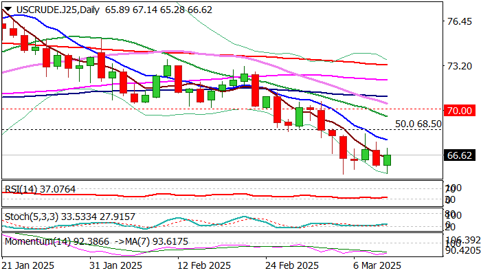 Near term action, however, may hold in prolonged consolidation above $65.26 support, which should be ideally capped by falling 10DMA ($67.75), but extended upticks (cannot be ruled out) to stay capped under psychological $70 barrier and mark healthy correction before larger bears regain full control.