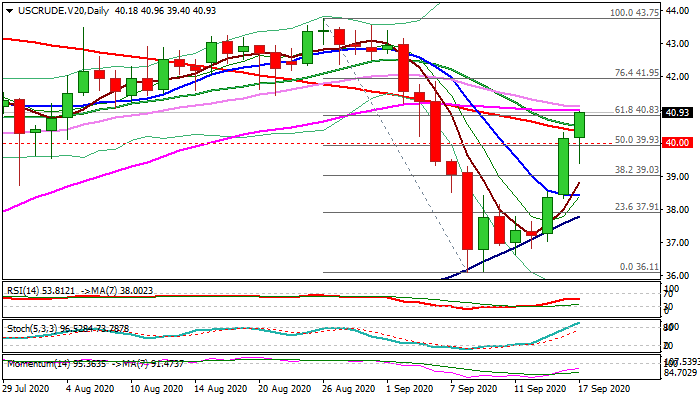 Improving daily techs underpin the action, with stronger positive signals developing on weekly chart, as oil is on track for bullish weekly close after two consecutive weeks in red and also forming bullish engulfing pattern, which could further boost the rally.