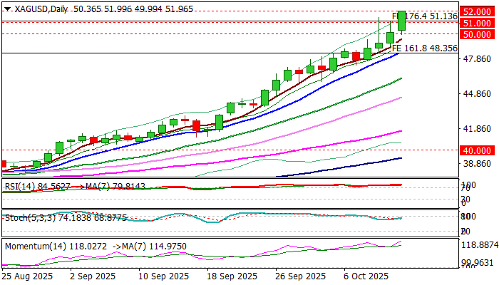 Violation of psychological $50 barrier, for the first time in decades, generated bullish signal, with price action receiving fresh boost from President Trump’s latest threats of imposing 100% tariffs on all goods imported from China.