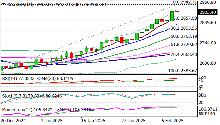 Initial support lays at $2880 zone (session low / 5DMA) followed by ascending daily Tenkan-sen ($2850) and $2805 (Fibo 38.2% of $2582/$2942 upleg).