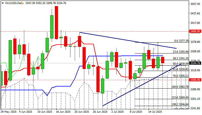 Solid supports at $3320/00 zone should keep the downside protected for renewed attacks at range tops ($3373/77), violation of which to open way for retest of targets at $3400 (psychological) and $3452 (June 16 top).