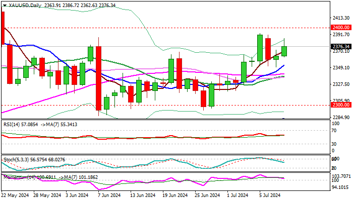 Fresh strength pushed the price to the upper side of longer range, spanned between $2390 and $2290, with psychological $2400 coming in focus.