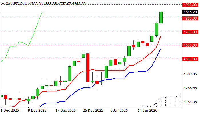 Gold hit new record high at $4888 on Wednesday and came closer to magic $5000 barrier, which is likely to be attacked very soon, if the current conditions persist.