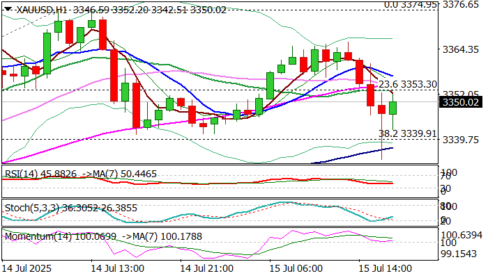 Fresh weakness broke through pivotal supports at $3340 zone (hourly higher base / Fibo 38.2% of $3283