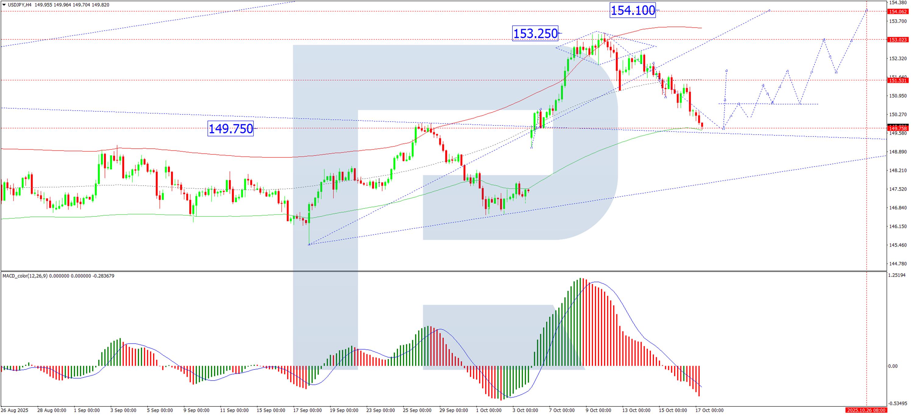 The USD/JPY pair has completed a corrective decline, finding a base at 149.75. We anticipate this correction is now concluding, paving the way for a growth wave with an initial target of 151.55 (testing it from below). Following this, a pullback towards 150.60 is plausible, potentially forming a local consolidation range. An upward breakout from this range would signal a continuation of the bullish momentum towards 154.10, which serves as the next local target. This outlook is technically confirmed by the MACD indicator, whose signal line is at lows below zero and appears to be reversing upwards, suggesting a new growth impulse is likely forming.