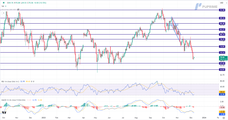 Oil prices face downward pressure, hitting a six-month low amid mounting uncertainties in the global economic landscape. A persistent lack of confidence, exacerbated by concerns over China's economic slowdown, has curtailed any upward momentum from prior OPEC production cuts. Despite attempts to balance the market, the relentless surge in US oil output, maintaining levels over 13 million barrels per day, intensifies the bearish sentiment.