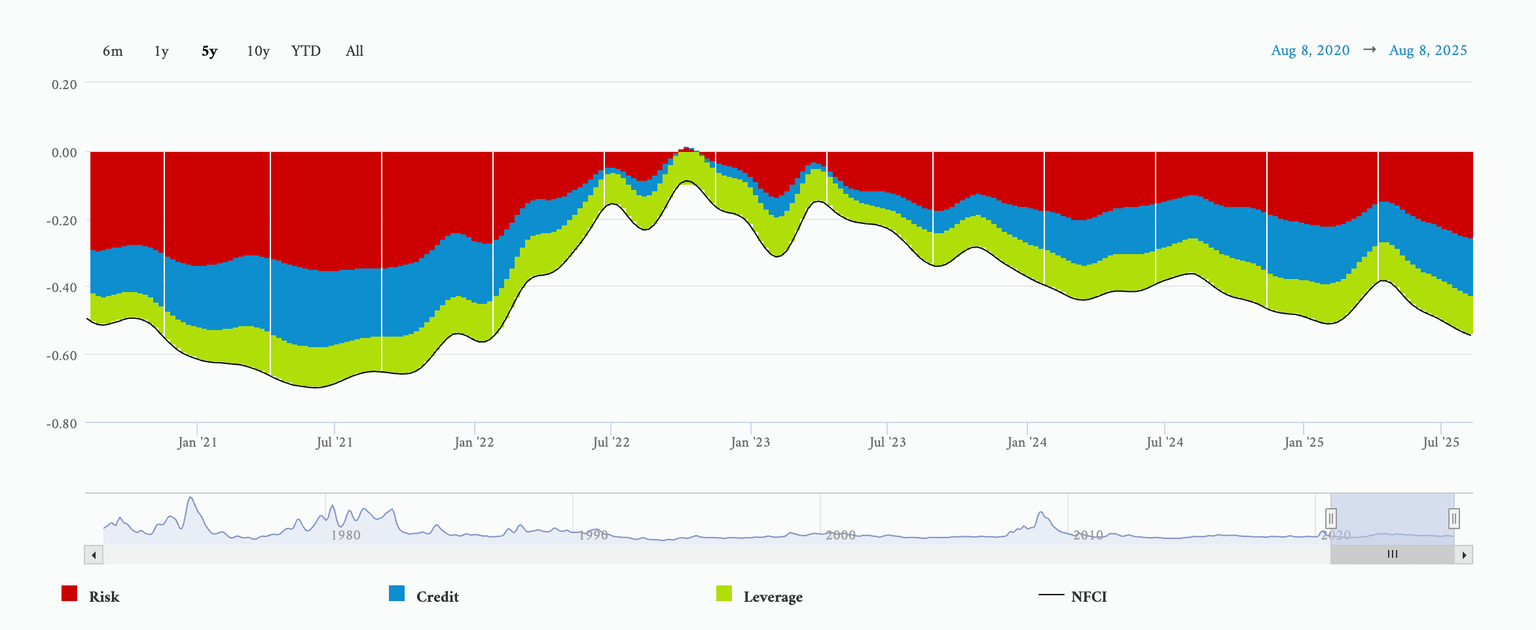 The Chicago Federal Reserve’s own National Financial Conditions Index also indicates that monetary policy is loose from a historical perspective. In fact, conditions weren’t even tight at the peak of the tightening cycle.