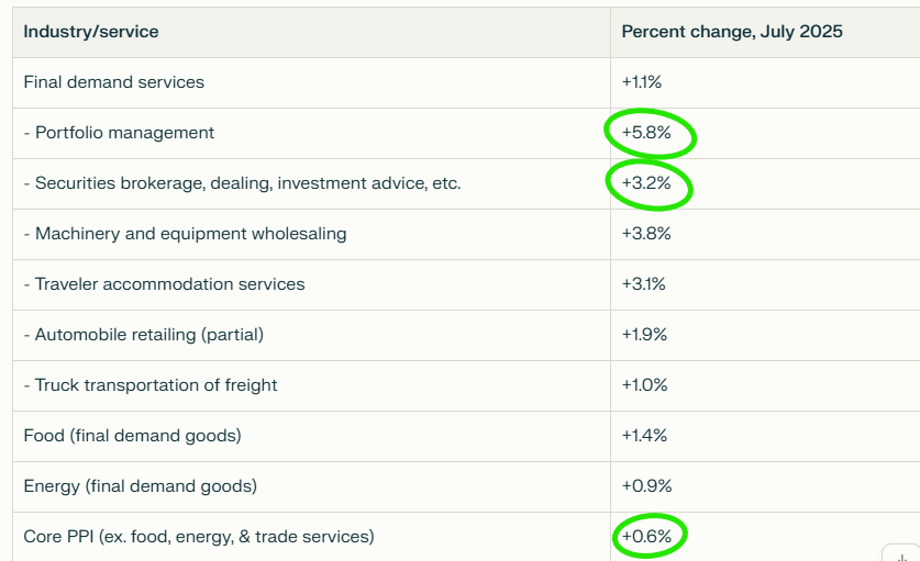 While the mainstream has taken the July PPI data as a confirmation of accelerating tariff-related price inflation, the fact that services are leading the way undercuts this narrative because services are not subject to import taxes.