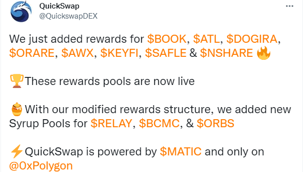 — QuickSwap (@QuickswapDEX) January 24, 2022