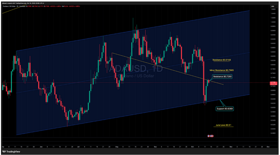 While pursuing these upside targets, Cardano bulls must keep a very close eye on the bottom of the current inclining parallel channel, located at $0.6369. If this crucial channel floor breaks, the near-term structure is invalidated, and price could drop sharply, targeting a complete washout back down toward $0.51.