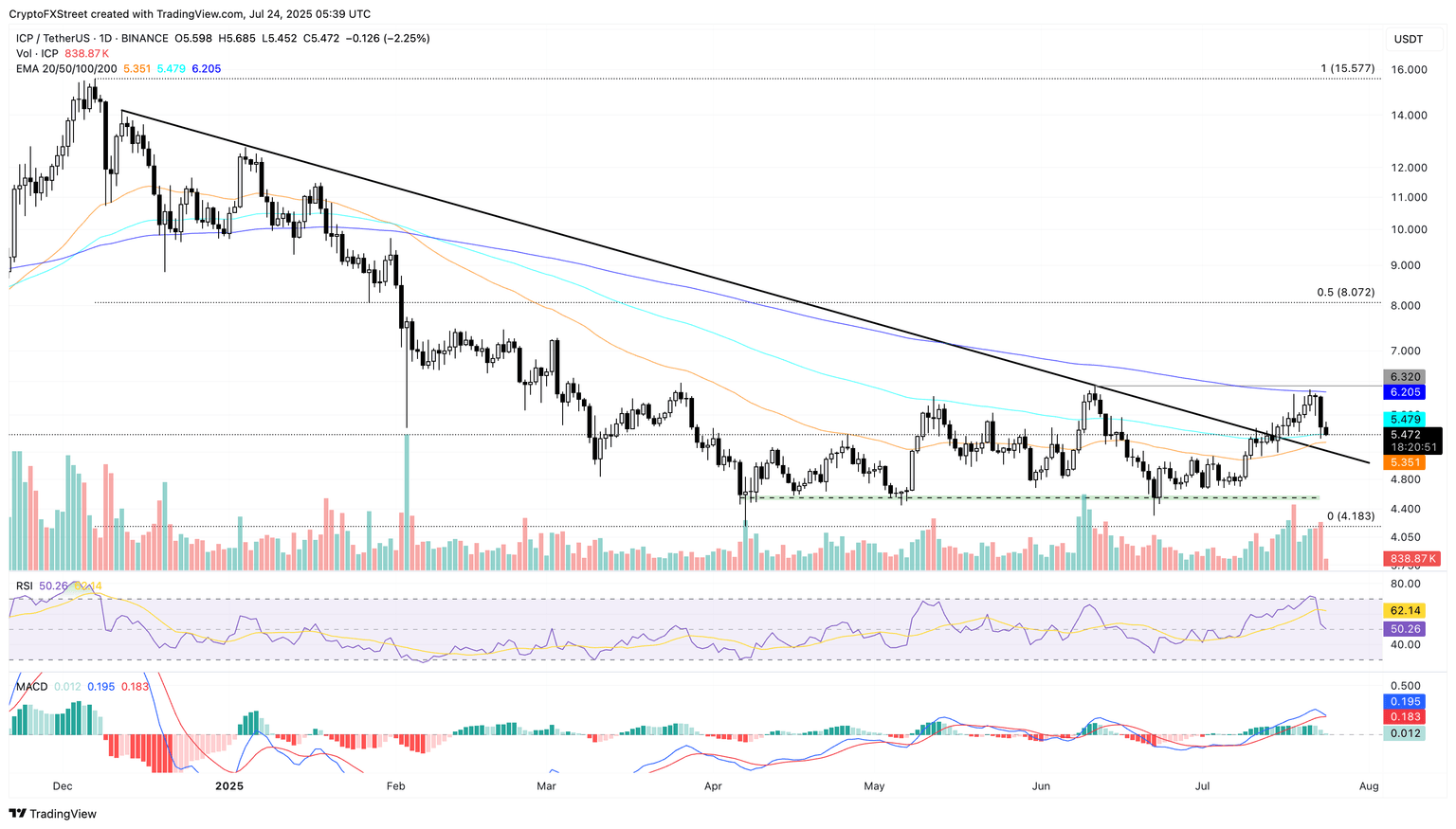 Internet Computer edges lower by 2% at press time on Thursday, extending the 8% drop from Wednesday. ICP lost steam after testing the 200-day EMA at $6.20, erasing the 9% gains from last week, fueled by a trendline breakout and the launch of CaffeineAI.