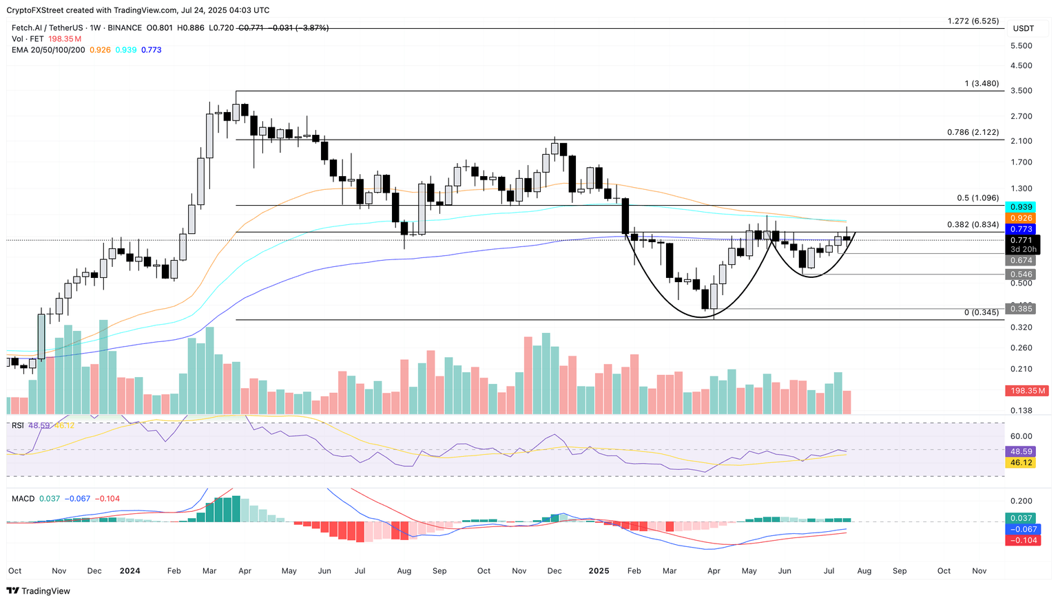 FET nears a bullish pattern breakout, aims to reclaim $1