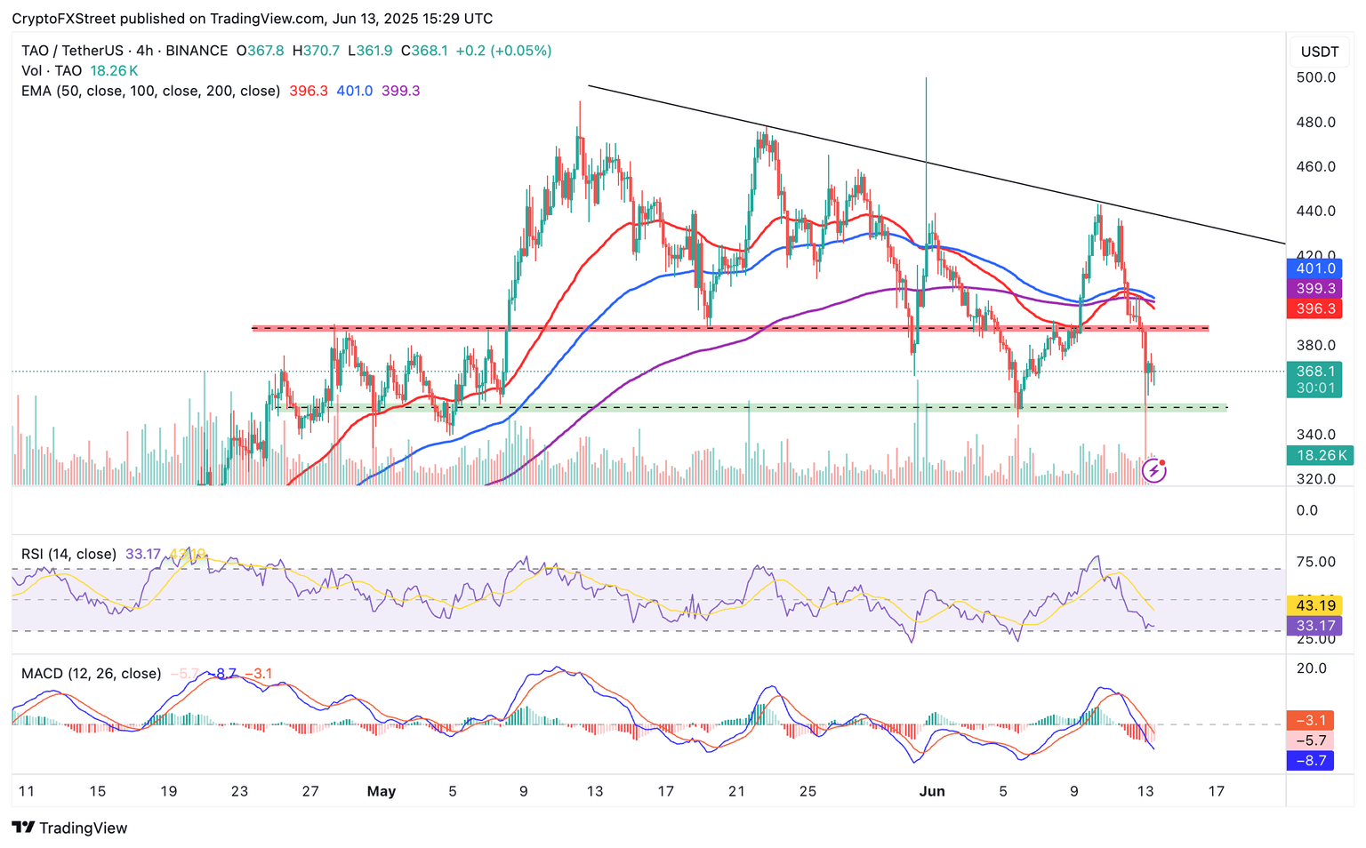 TAO/USDT 4-hour chart